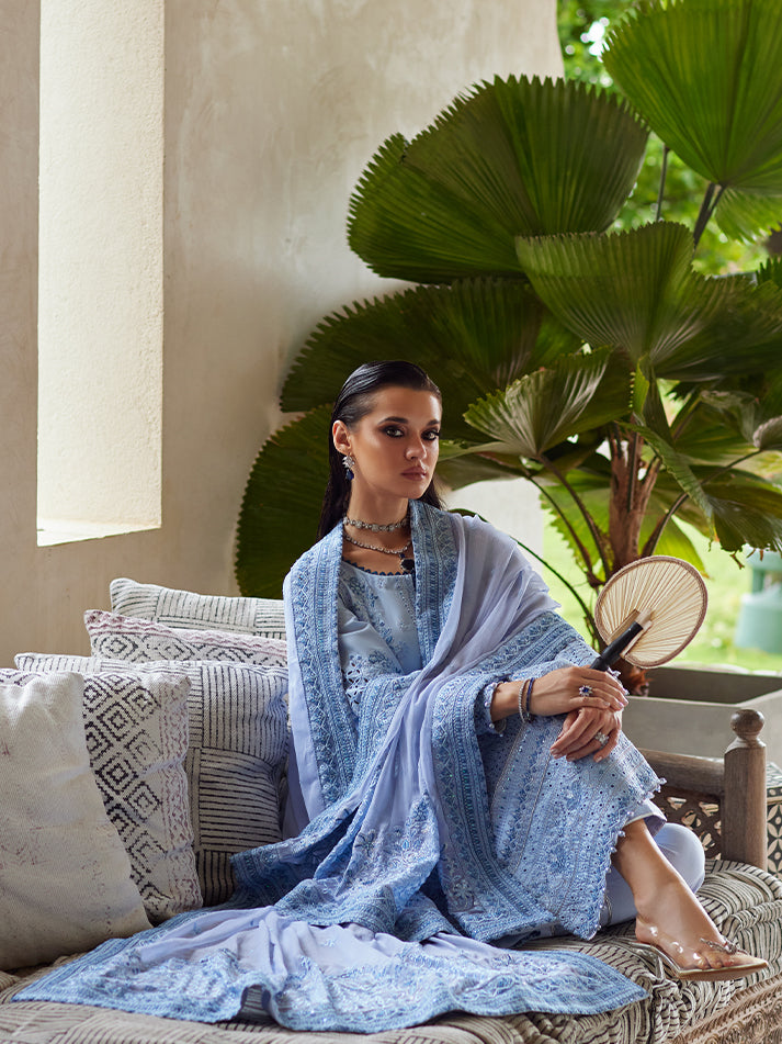 - Chikankaari-embroidered and Sequined Rib Lawn Sleeves