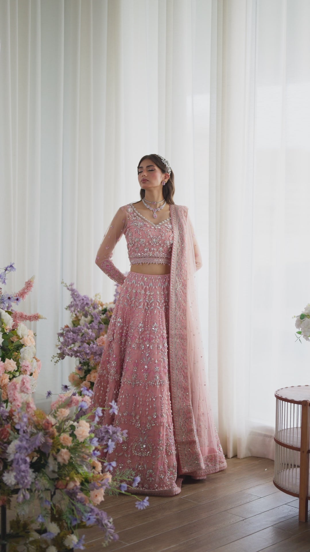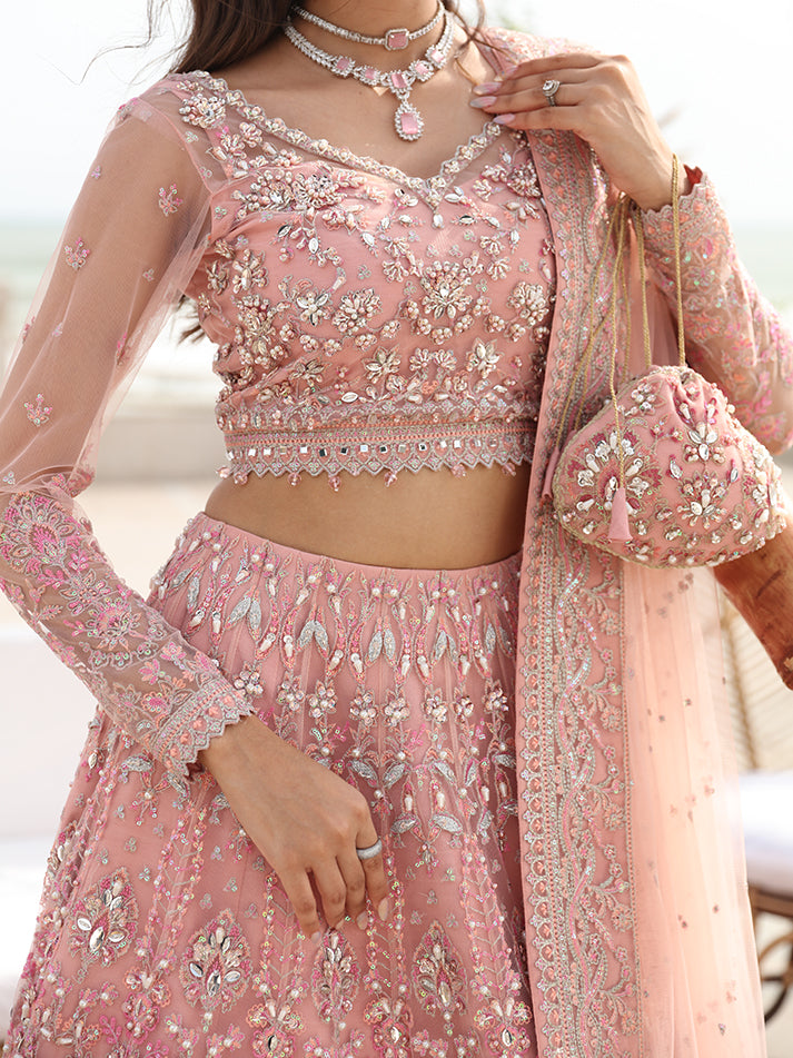 ? ?Fully hand-worked, embroidered And sequined net panels for lehnga