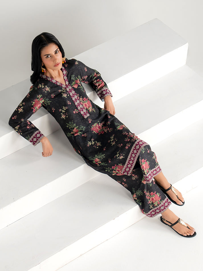 A classic black printed lawn ensemble that exudes timeless elegance. The shirt and matching trouser are crafted from soft, breathable lawn fabric, enhanced with refined prints for a sophisticated finish. A versatile choice for effortless style.