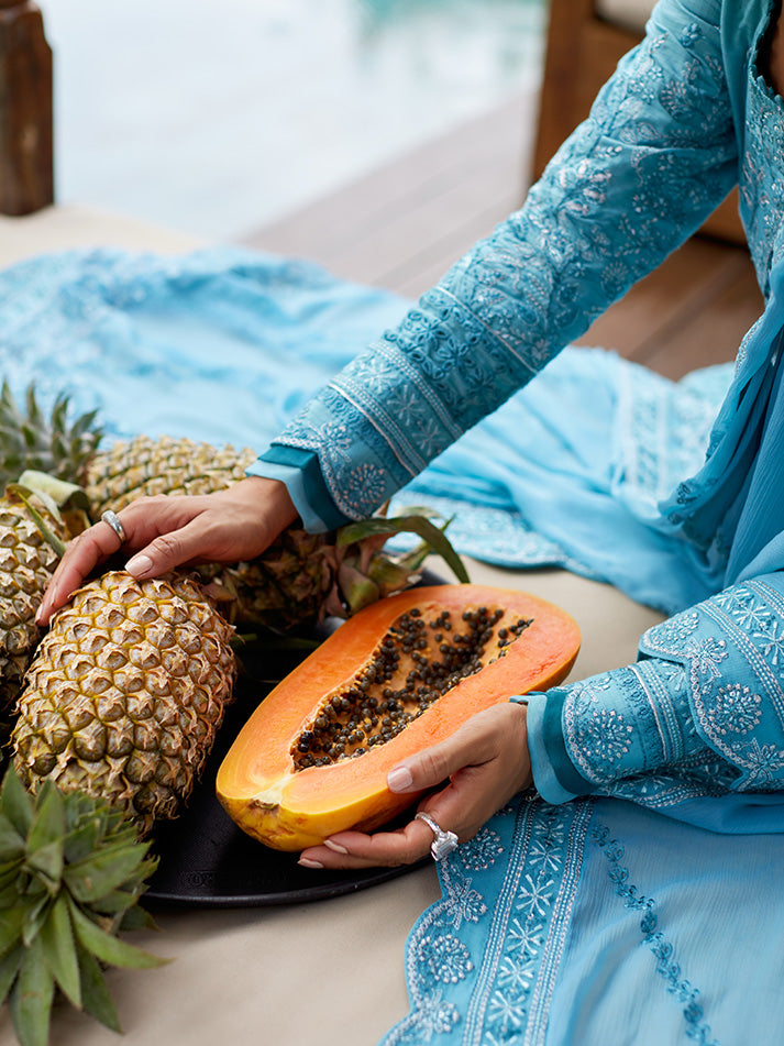 Accessories/embellishments showcased in images are exclusively available in the stitching option. Due to lighting effects, the actual colour of the product might slightly vary.