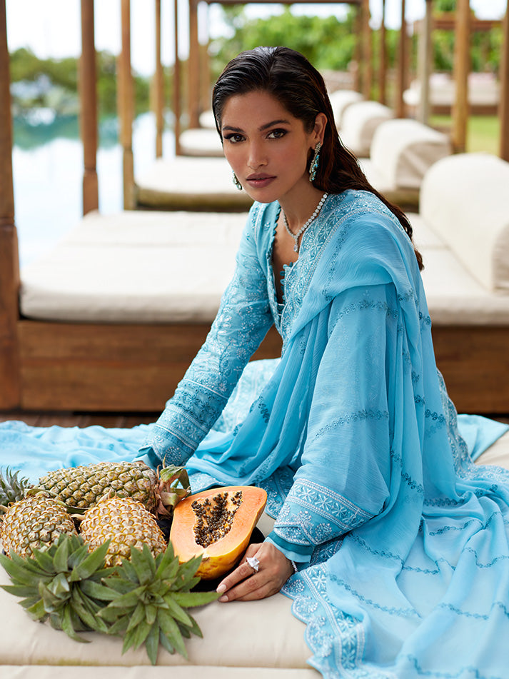 - Chikankaari-embroidered and Sequined Chequered Lawn Sleeves