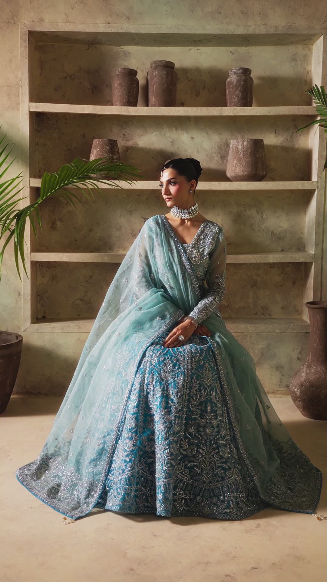 • Embroidered and sequined organza jaal for front neckline