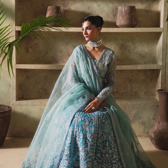 • Embroidered and sequined organza panels for lehnga