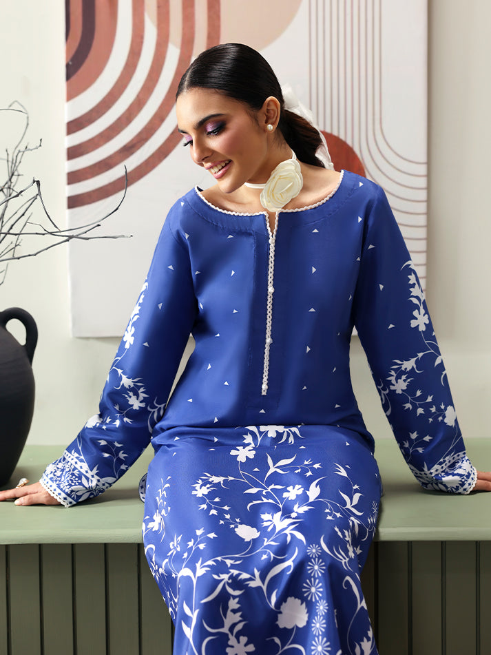 Liyanah captures fresh simplicity with its serene blend of blue and white tones. Crafted from soft poly lawn fabric, this two-piece set features a printed shirt and matching pants designed for comfort and effortless everyday style. Light, breezy, and versatile, Liyanah brings a touch of calm elegance to your wardrobe.