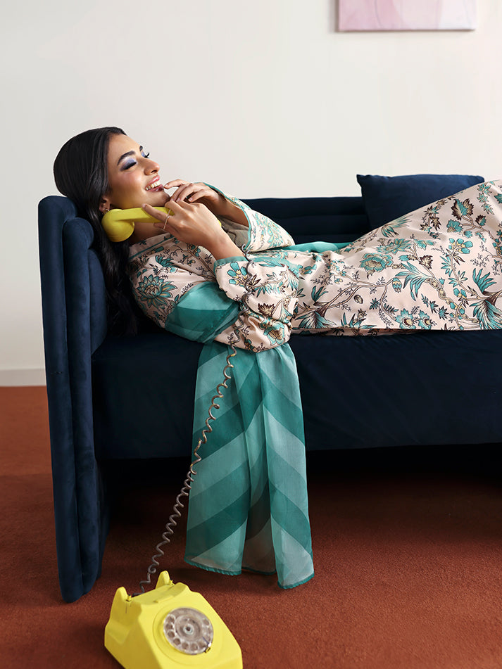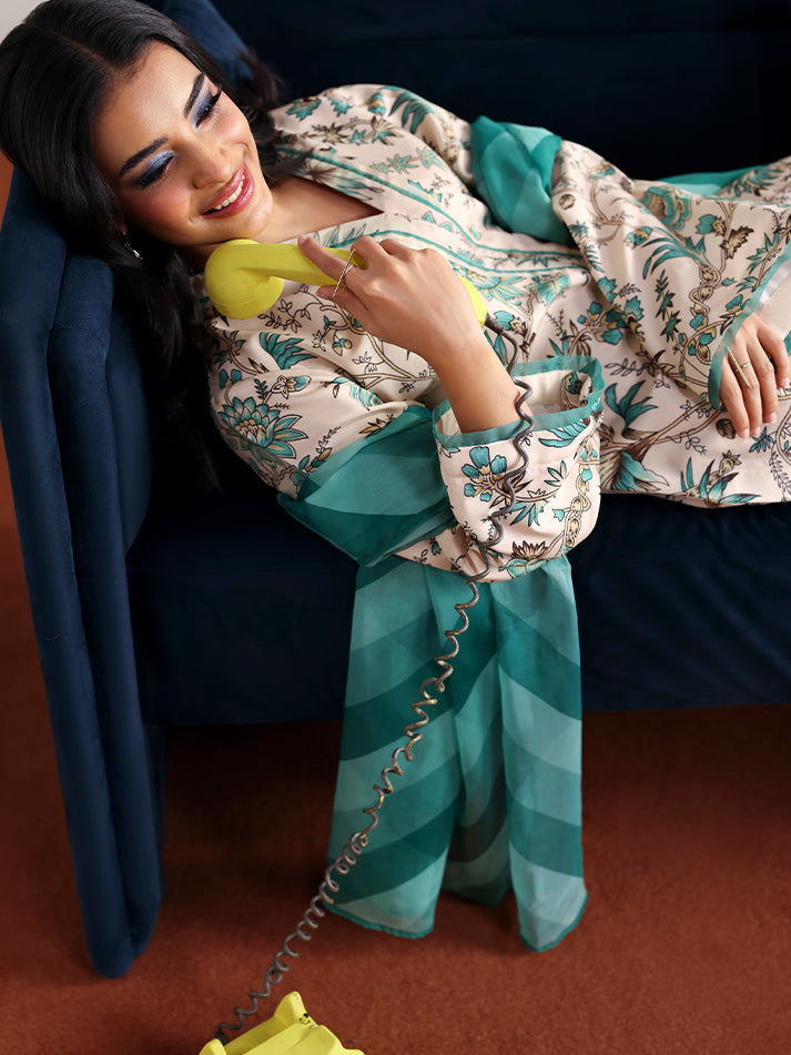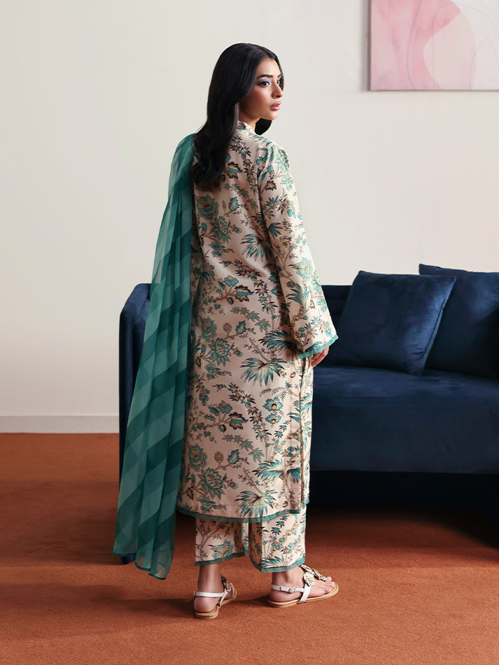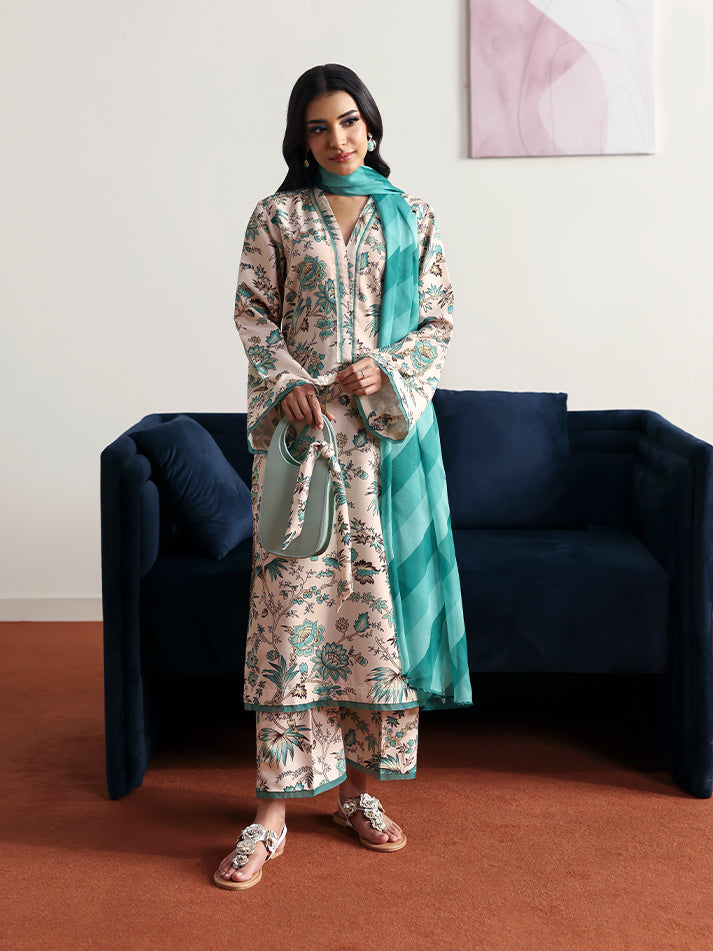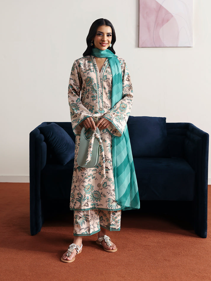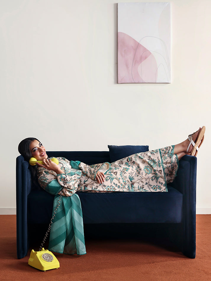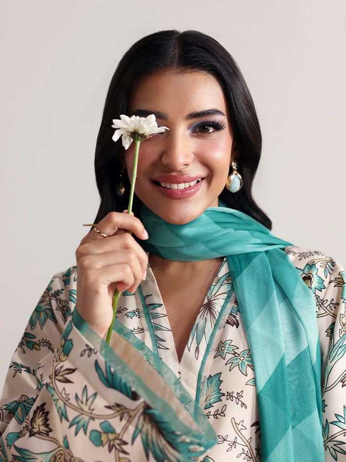 Meadowe offers a refreshing take on minimal elegance with its soft off-white base crafted in breathable poly lawn fabric. The shirt and trouser feature a delicate all-over print that adds a gentle charm to the ensemble. Light and airy, the chiffon dupatta flows beautifully, completing the look with effortless grace. Ideal for warm days when comfort and style go hand in hand.