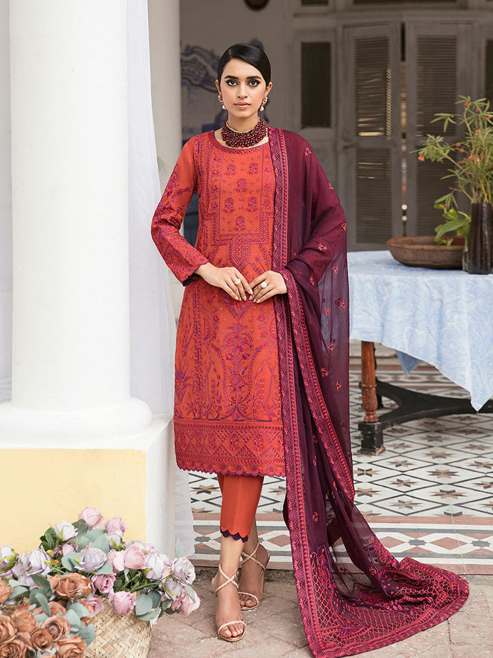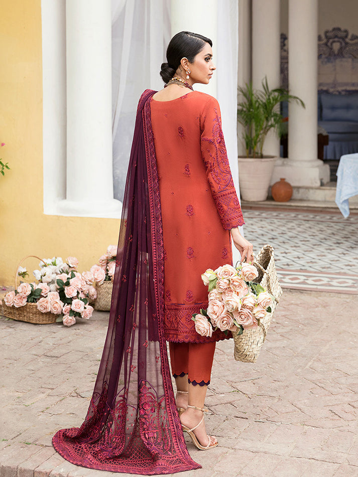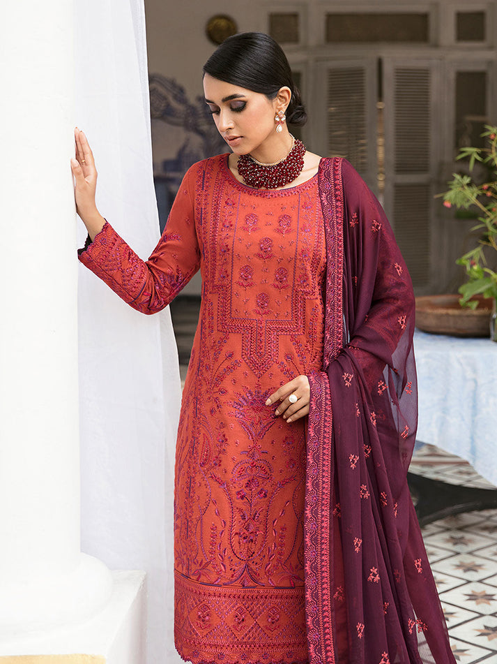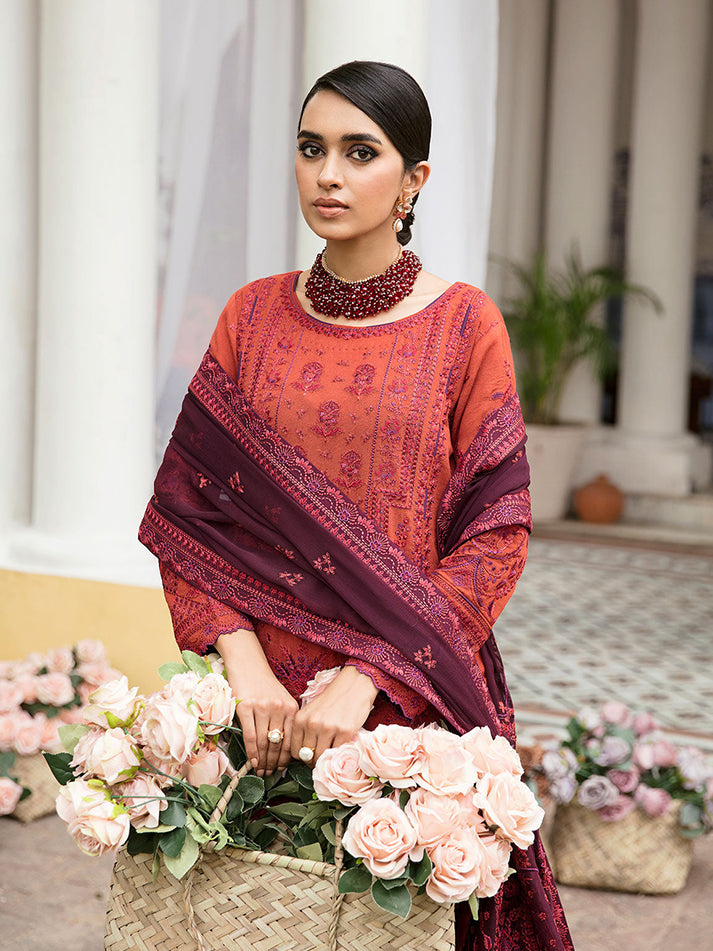 Introducing Nayaab (GL-EP23-V1-15) - a timeless masterpiece. The embroidered khadi net front and back exudes sophistication, while the delicate embroidery on the sleeves adds a touch of allure. The outfit is paired with a? contrasting chiffon dupatta that adds a touch of grandeur to the entire look.