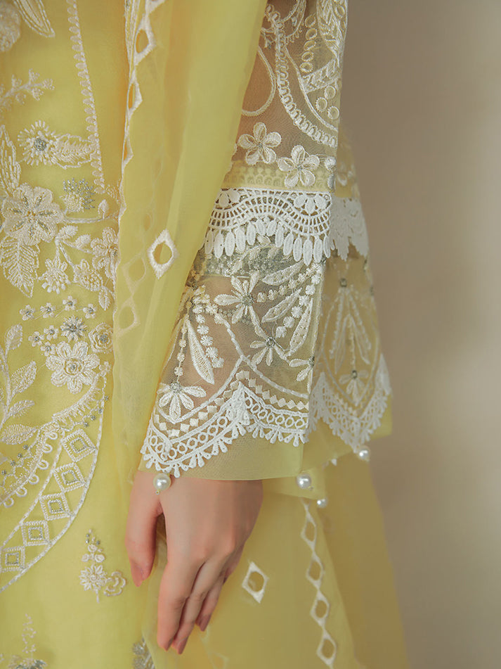 upcoming embroidered pret collection. Artistically rendered on pale yellow