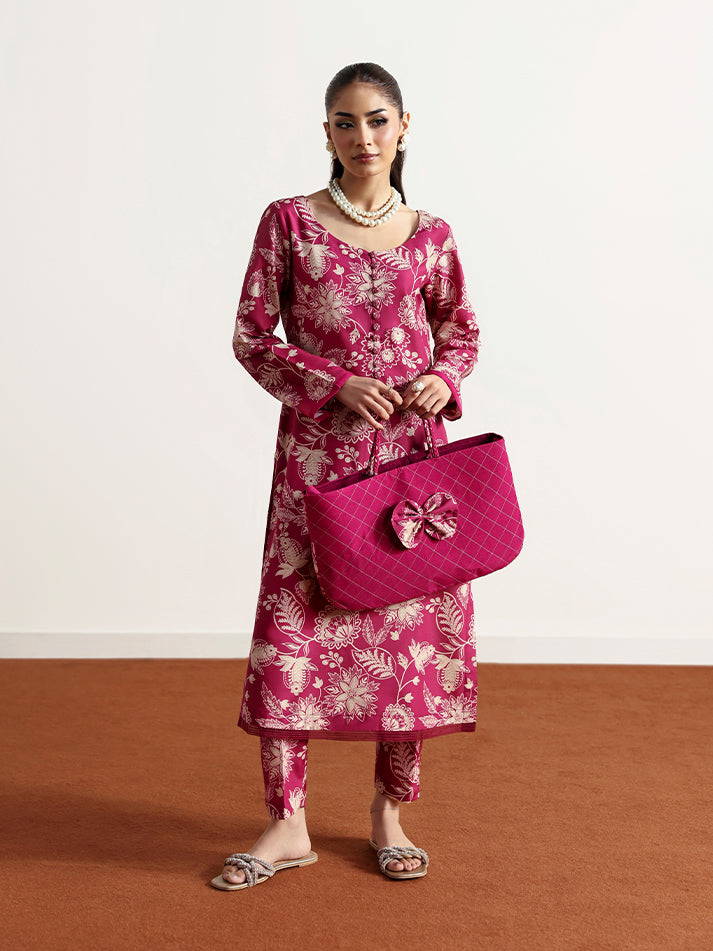 Rosalee brings a vibrant burst of color to your wardrobe with its striking hot pink tone. Crafted from soft poly lawn fabric, this printed co-ord set offers a perfect balance of comfort and contemporary style. Designed for effortless everyday wear, Rosalee adds a playful yet polished touch to your look.