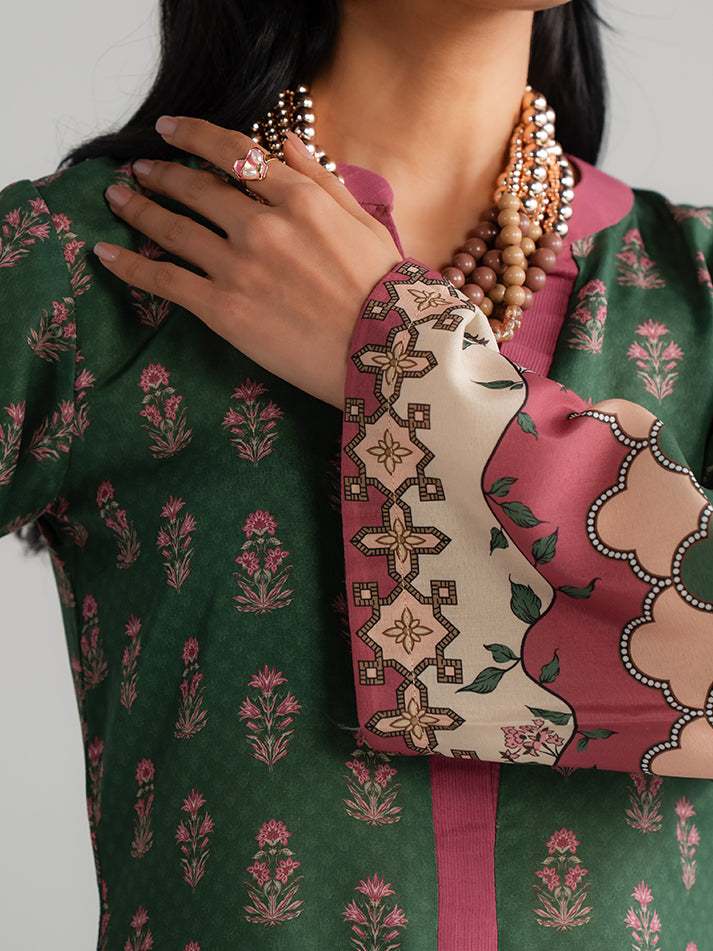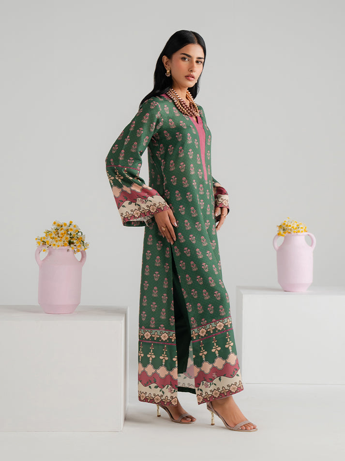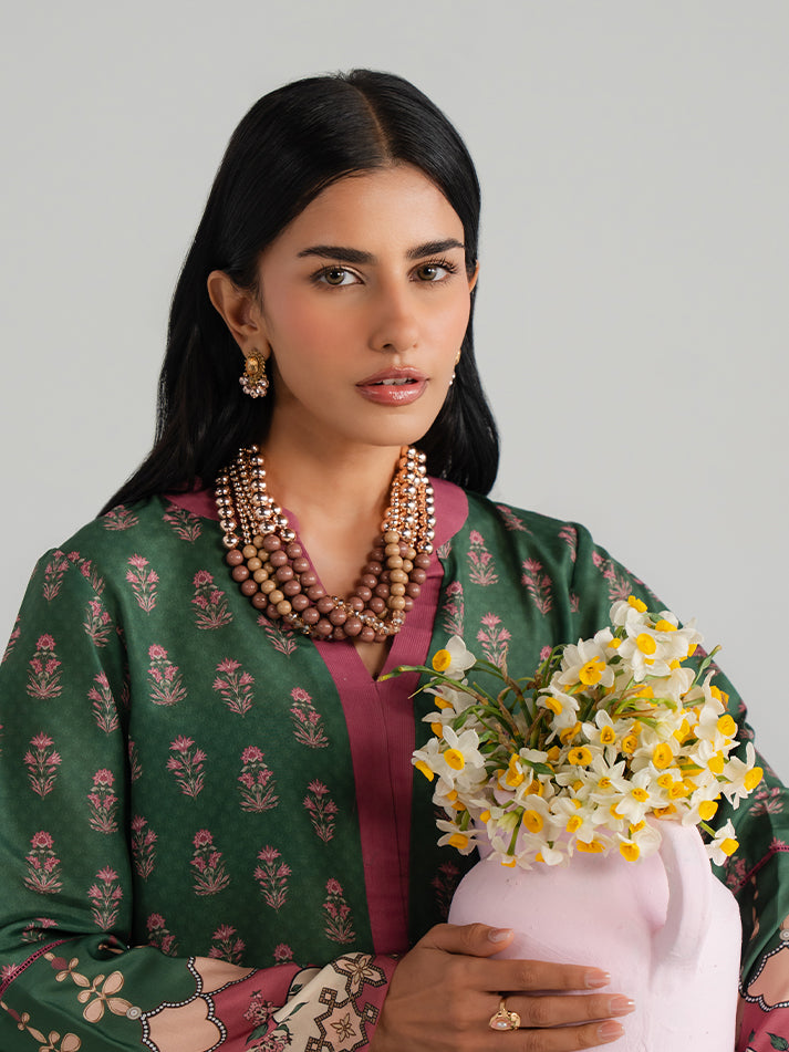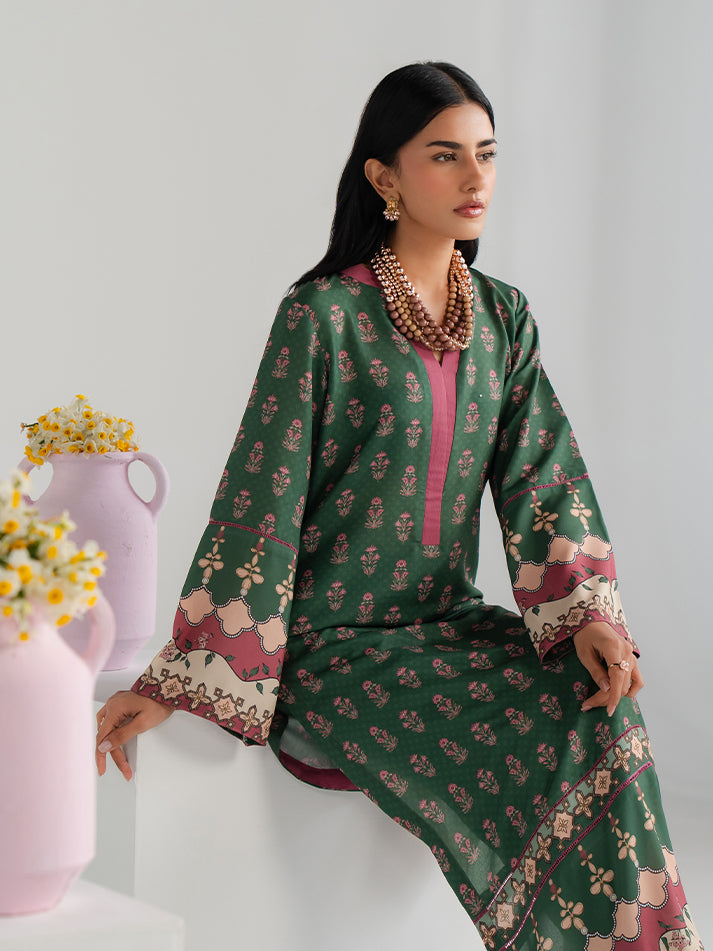 Elevate your daily wardrobe with this beautifully printed green lawn shirt and trouser set. The lightweight lawn fabric ensures all-day comfort, while the detailed print adds a graceful visual appeal. An ideal choice for casual gatherings and daytime outings.
