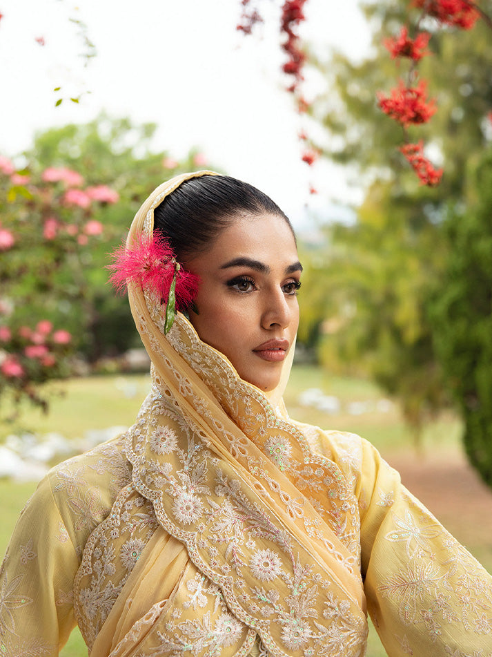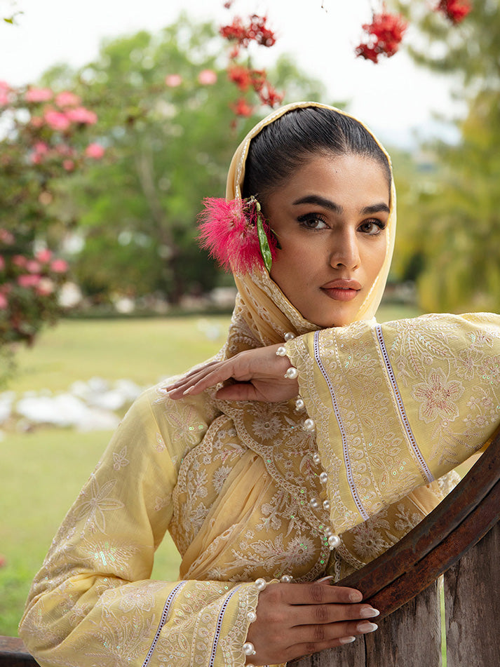 Embroidered & sequined ribbed lawn back Embroidered & sequined ribbed lawn sleeves